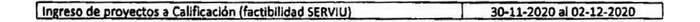 3. Modifíquese, el plazo para ingreso de proyectos a calificación (factibilidad Serviu) indicado en la tabla del resuelvo Nº 8 de la Res. Ex. Nº 981, de fecha 20 de noviembre de 2020, debiendo decir: