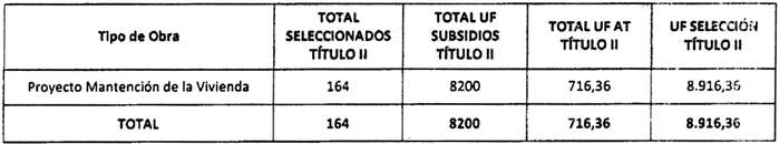 1. Que, mediante la resolución exenta citada en la letra n) de los vistos, se llamó a postulación regional, para el otorgamiento de subsidios del Título II del Programa de Protección del Patrimonio Familiar, destinados proyectos de la línea de mantención, conforme a lo indicado en el artículo 5º letra b3 del decreto citado en la letra h) de los vistos, y acorde a las condiciones autorizadas por el Ministro de Vivienda y Urbanismo.