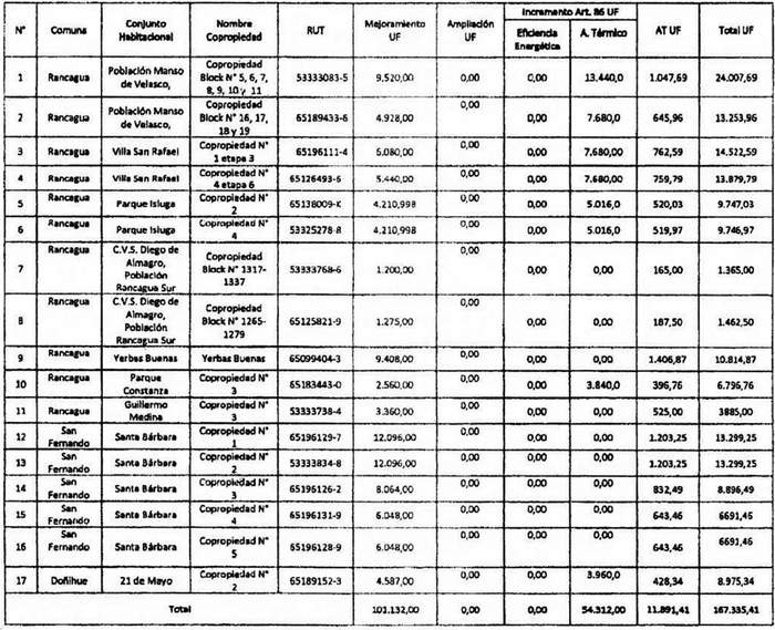 c. Que Serviu Región del Libertador General Bernardo O'Higgins calificó favorablemente todas las factibilidades de 17 proyectos ingresados para la postulación correspondiente al llamado citado en el visto k);