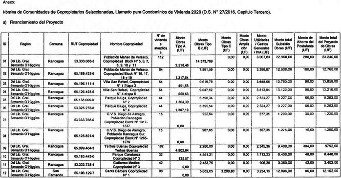 2. Fíjase el número de postulantes seleccionados en la Región del Libertador General Bernardo O'Higgins de acuerdo a la distribución regional de recursos consignada en el resuelvo número m), de la resolución exenta Nº 1.057, de fecha 10 de diciembre de 2020, de esta Seremi Minvu, para los proyectos que se financiarán conforme lo dispone el resuelvo Nº 11, de la resolución exenta Nº 439, de fecha 3 de junio de 2020, de esta Seremi Minvu, según se indica en las siguientes tablas:
