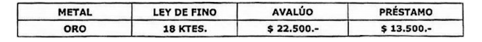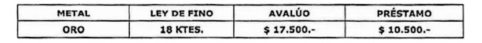 4. Que, el Departamento de Tasaciones en su Informe Técnico de fecha 23 de diciembre de 2020, estableció el monto máximo de avalúo por gramo de metal noble ley de fino oro 18 Ktes. que debe ser considerado en el cálculo de los préstamos con garantía prendaria.