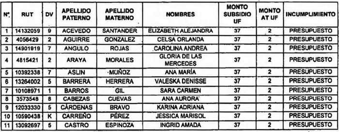 2. Se libera un total de 1.755 U.F., que estaban destinados a 45 beneficiarios excluidos de la Nómina de Postulantes Seleccionados en la resolución exenta Nº 1.129 (V. y U), de fecha 27 de julio de 2020 de acuerdo a las razones expuestas en el cuadro precedente.