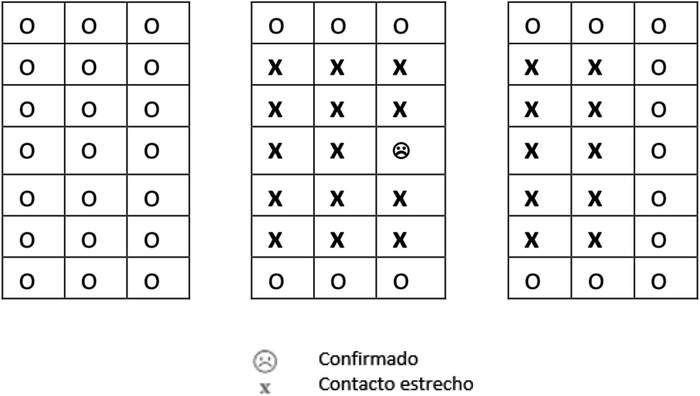 a) Cualquier persona (incluyendo la tripulación), que haya tenido contacto directo con un caso confirmado de COVID-19, en vuelo o en tierra, entre dos días antes y 14 días después del inicio de síntomas del enfermo(1).