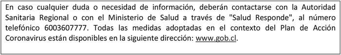 (10)Protocolo de Limpieza y Desinfección de Ambientes - COVID-19, disponible en: https://www.minsal.cl/wp-content/uploads/2020/03/PROTOCOLO-DE-LIMPIEZA-Y-DESINFECCI%C3%93N-DE-AMBIENTES-COVID-19.pdf