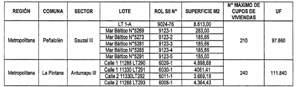 5. El Serviu Región Metropolitana deberá completar los antecedentes correspondientes a cada uno de los terrenos singularizados en el Resuelvo 1. de la presente resolución, a fin de acreditar que cumplen a cabalidad y en los términos establecidos por el Reglamento, los requisitos y condiciones indicados en el artículo 10°, especialmente en los números 2, 3, y 4. Dichos antecedentes deberán estar disponibles con anterioridad a la fecha de publicación del llamado que por esta resolución se autoriza.