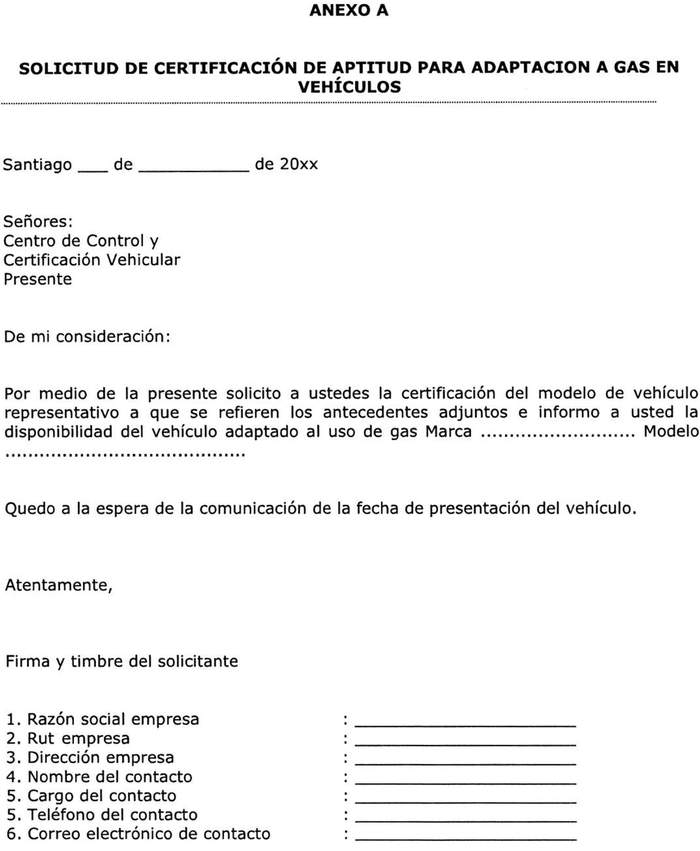 El Centro deberá emitir un pronunciamiento en un plazo de cinco días a contar de la fecha de recepción del vehículo. En caso favorable, conjuntamente con la respuesta, se otorgará el "Certificado de Aptitud para Adaptación al Uso de Gas", el que habilitará al interesado para hacer las adecuaciones de que se trata, sólo en vehículos individuales del modelo o tipo de vehículo aprobado o de los modelos amparados por la certificación.