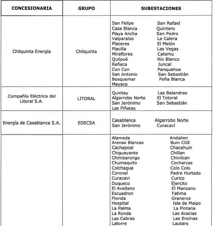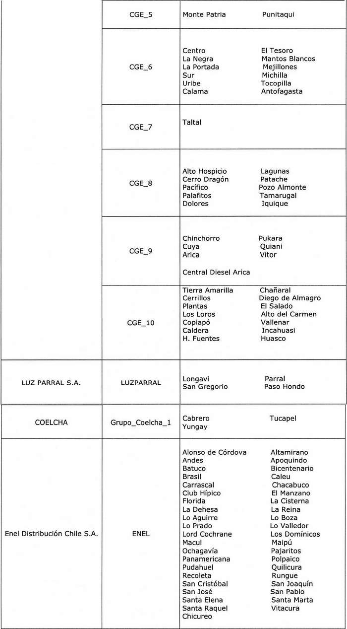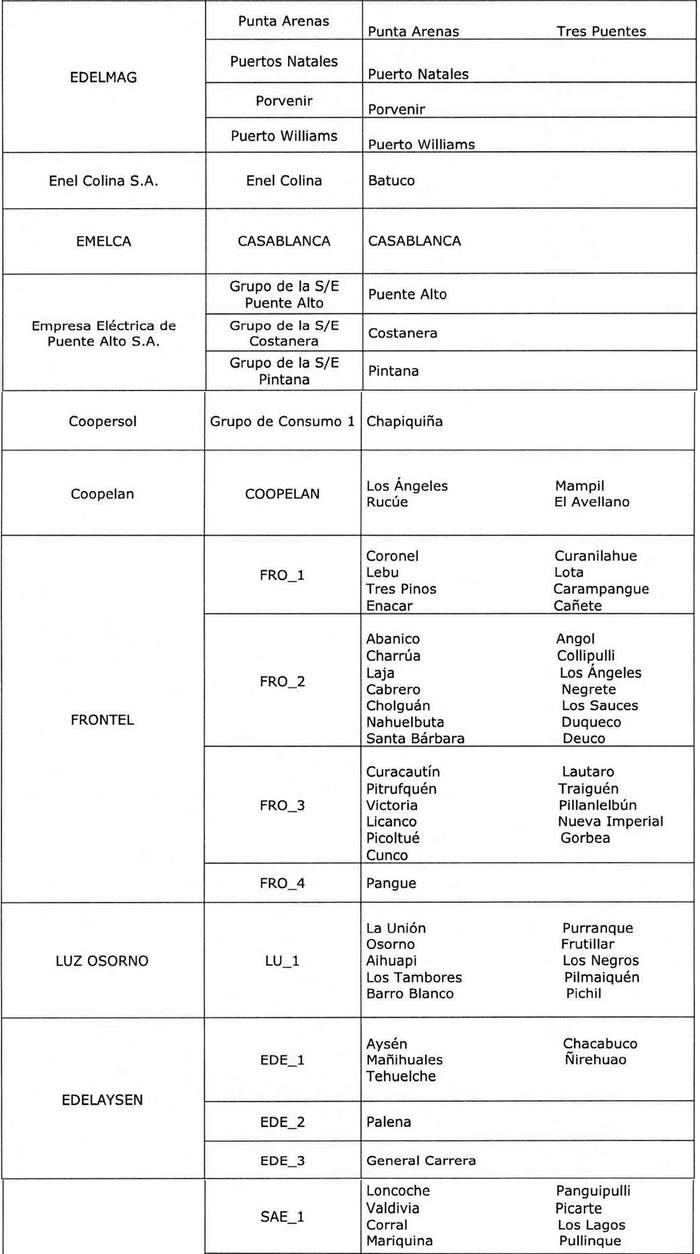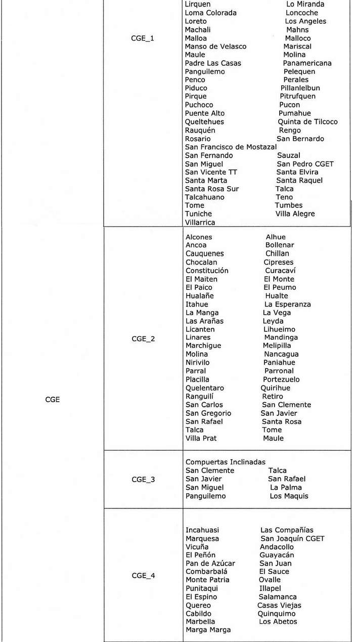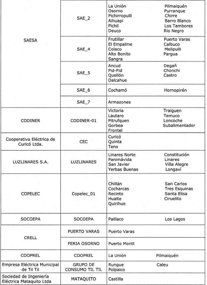 e) Lo señalado en Carta SGR-45/2020 de Chilquinta Energía; Carta SGSC-038/2020 de Compañía Eléctrica del Litoral S.A.; Carta EC-228/2020 de Energía de Casablanca; Carta Unidad de Explotación y Control de la Energía Nº 419/2020 del grupo CGE; Carta Lp-1671/2020 de Luz Parral; Carta C-1818-2020 de Coelcha; Carta G.R. Nº 106/2020 de Enel Distribución Chile S.A.; Carta EEMG Nº 1236/2020-G de Edelmag; Cartas EC 20/2020 y EC 25/2020 de ENEL Colina S.A.; Carta EMEL.2020.344 de Emelca; Carta GO Nº 098/2020 de Empresa Eléctrica Puente Alto S.A.; Carta Ord. Nº 44/2020 de Coopersol; Carta G Nº 694/2020 de Coopelan; Carta Nº 1486753 del Grupo Saesa; Carta GE Nº 1540/20 de Codiner Ltda.; Carta Li-4086/2020 de Luz Linares; Carta Nº5054/2020 de Copelec; Carta Nº 346/2020 de Socoepa; correo electrónico de fecha 10 de diciembre de 2020 de Crell; Carta Cooprel 112020/R68 de Cooprel; Carta EEMTT Nº 119/2020 de Empresa Eléctrica Municipal de Til Til; Carta CEC Nº 1611/2020 de Cooperativa Eléctrica Curicó y Carta Adm. Nº 153/20 de Sociedad de Ingeniería Eléctrica Mataquito Limitada; en las cuales se actualizan sus grupos de consumo;