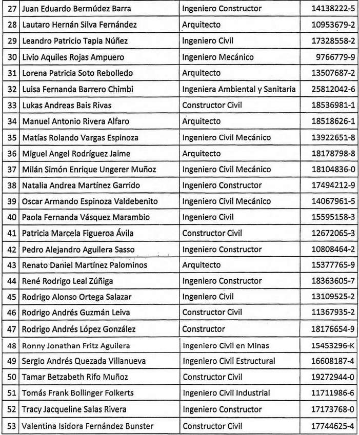 3. Desígnase a los siguientes profesionales, que aprobaron el respectivo proceso de acreditación, como "Evaluadores Energéticos Internos", quedando habilitados para realizar la calificación energética de proyectos que el Ministerio de Vivienda y Urbanismo o el Serviu les encargue.