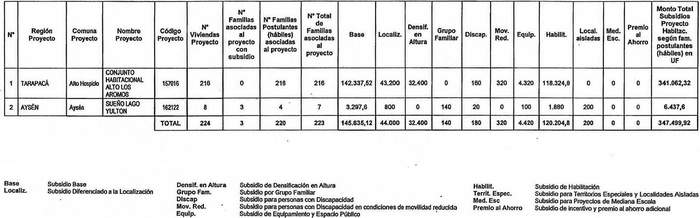 4. Los recursos comprometidos en el resuelvo 2. y 3. de la presente resolución, para los proyectos seleccionados en el concurso a que se llamó por resolución exenta Nº 1.383 (V. y U.), de 2020, en el cierre de postulación efectuado el día 10 de diciembre de 2020, se resumen en los siguientes cuadros, incluyendo la suma total de familias beneficiadas y Unidades de Fomento comprometidas, considerando los montos de subsidio de los proyectos, incluidos sus respectivos servicios de asistencia técnica y fiscalización técnica de obras: