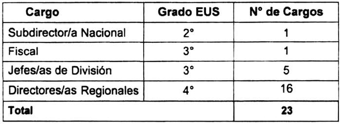 A. Director/a Nacional, Subdirector/a Nacional, Directores/as Regionales y Jefes/as de División: