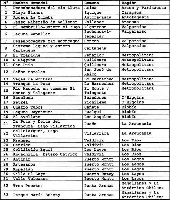 1° Iníciese el proceso de declaración, de oficio por el Ministerio del Medio Ambiente, de los siguientes Humedales Urbanos: