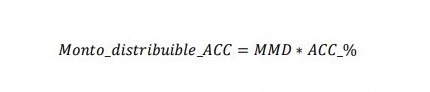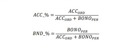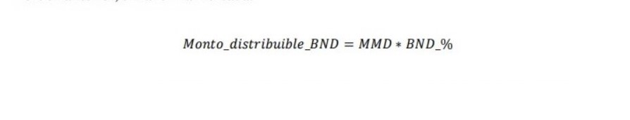 Para la asignación del monto distribuible se considera a los accionistas ordinarios (ACCORD) pari passu con tenedores de bonos sin plazo fijo de vencimiento (BONOPER). Luego, la asignación del monto distribuible, calculado en la Tabla anterior, a accionistas (ACC_%) y tenedores de bonos sin plazo fijo de vencimiento ( BND_%) se realizará a prorrata en función del valor nominal del bono sin plazo fijo de vencimiento (previa depreciación) y de las acciones ordinarias, de acuerdo con la siguiente forma: