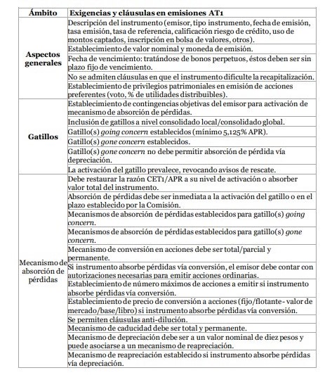EXIGENCIAS Y CLÁUSULAS EN EMISIONES AT1