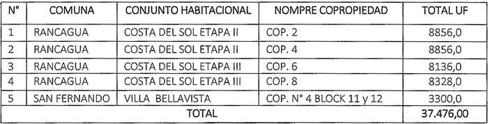 4.- Impútese el monto total de 59.436,00 Unidades de Fomento asignados en esta resolución, a los recursos autorizados a la Región del Libertador General Bernardo O'Higgins, para el Programa de Protección del Patrimonio Familiar del llamado regional en condiciones especiales año 2020, para condominios sociales, aprobada mediante resolución exenta N° 981 de fecha 20 de noviembre de 2020, de esta Seremi Minvu.