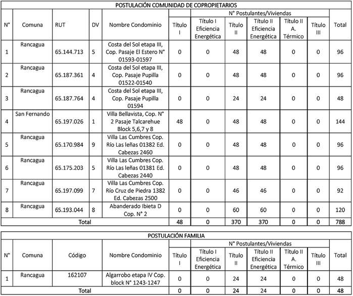 APRUEBA NÓMINA DE POSTULANTES SELECCIONADOS CORRESPONDIENTES AL LLAMADO REGIONAL EN CONDICIONES ESPECIALES AÑO 2020 Y DISPONE ASIGNACIÓN DE RECURSOS PARA LA REGIÓN DEL LIBERTADOR GENERAL BERNARDO O'HIGGINS, QUE SE DESTINARÁN AL FINANCIAMIENTO DE SUBSIDIOS PARA EL DESARROLLO DE PROYECTOS DEL PROGRAMA DE PROTECCIÓN DEL PATRIMONIO FAMILIAR EN SU MODALIDAD REGULADA POR EL CAPÍTULO SEGUNDO DE LA ATENCIÓN A CONDOMINIOS DE VIVIENDA SOCIAL