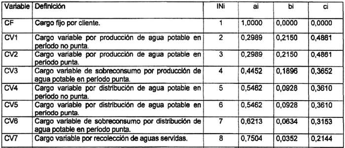 Se definen IN1, IN2, IN3, 1N4, IN5, IN6, IN7, IN8, IN9, IN10, IN11, IN12, IN13, IN14, IN15, IN16, IN17 e IN18, como los polinomios de indexación de tarifas. Se calculan utilizando la siguiente fórmula general:
