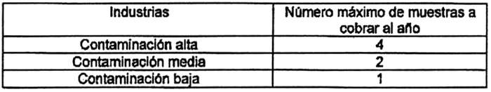 Los valores y número máximo de muestras a cobrar al año se han determinado de acuerdo a la clasificación de las industrias según el nivel de contaminación del efluente evacuado, cuya definición se indica a continuación: