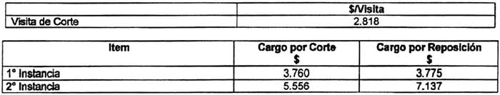 El prestador podrá cobrar por concepto de corte y reposición del suministro a usuarios morosos los siguientes cargos en las instancias que se indican: