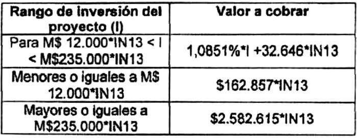 Donde I corresponde al monto total de la construcción del proyecto, en pesos.