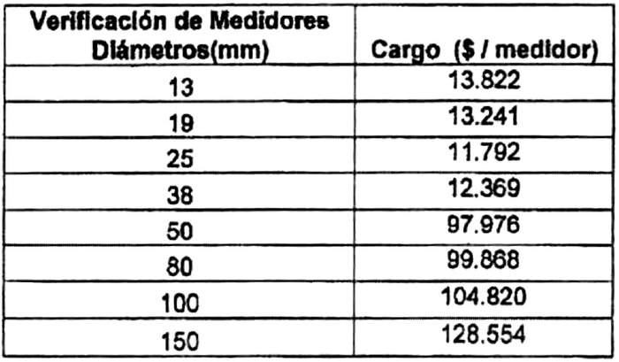 El prestador podrá cobrar por concepto de verificación de medidores el Cargo * IN14 de acuerdo a los siguientes valores: