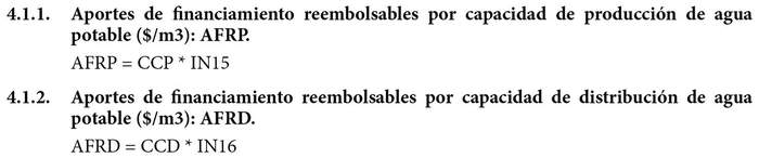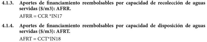 Los aportes de financiamiento reembolsables a cobrar al interesado corresponderán al valor resultante de aplicar las fórmulas respectivas, definidas en el punto 4.1. Dichos aportes son los siguientes:
