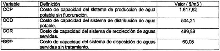 En las zonas abastecidas por los sistemas de producción de los sectores de Colina y de Ayres de Colina que incorporen la fluoruración del agua potable, el cargo CV2 se incrementará en 2,19 pesos por metro cúbico y en 5,43 pesos por metro cúbico, respectivamente.