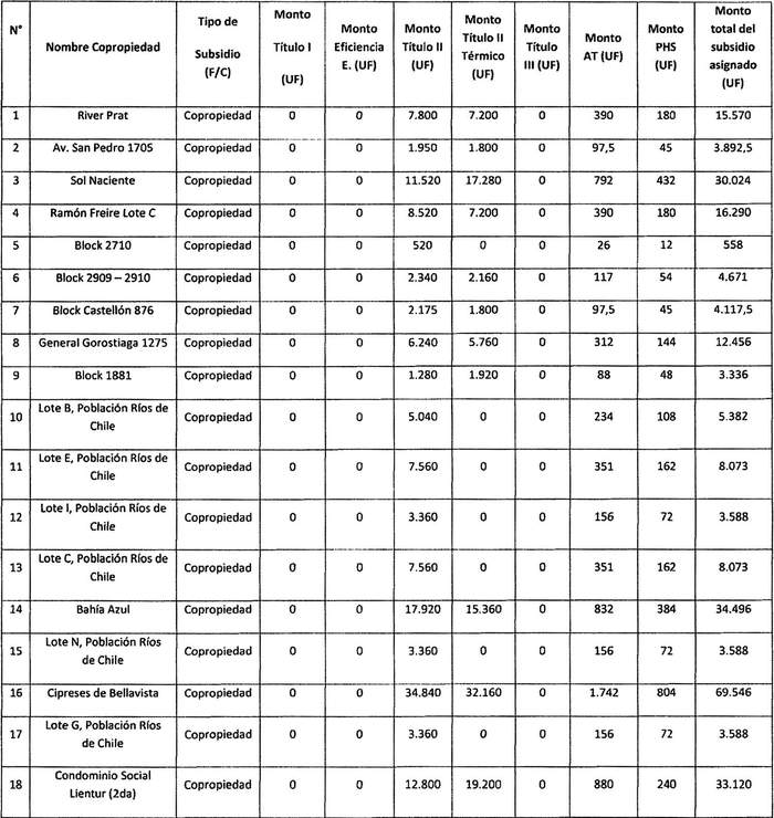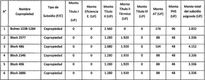 Tabla N° 1 Asignación de Recursos Condominios Sociales Demanda General: