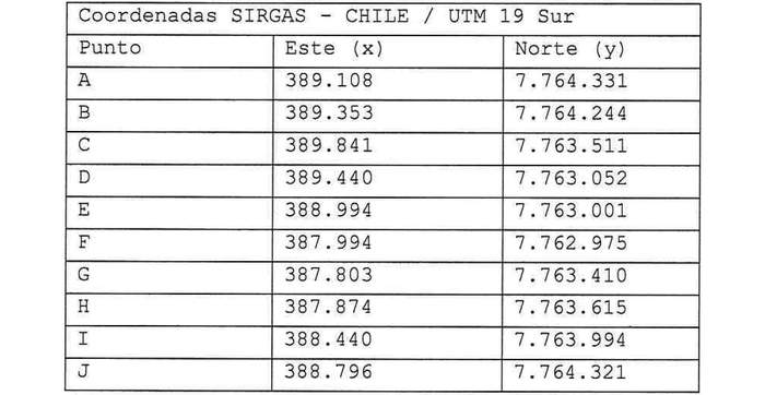 . Las coordenadas de los puntos de los tramos del polígono son:
