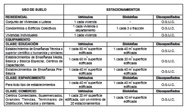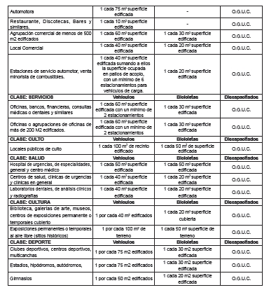 Los proyectos de obras nuevas, ampliaciones y los cambios de destino parcial o total de edificaciones existentes deberán cumplir las normas y estándares mínimos de estacionamiento indicados en el cuadro siguiente contenido en el presente artículo.