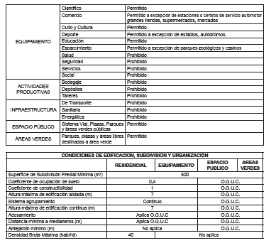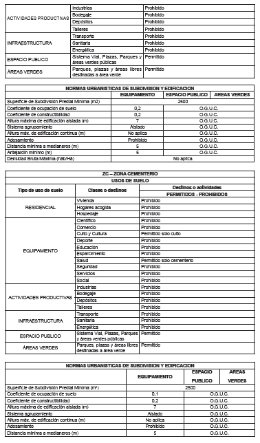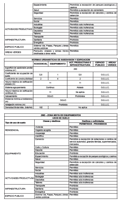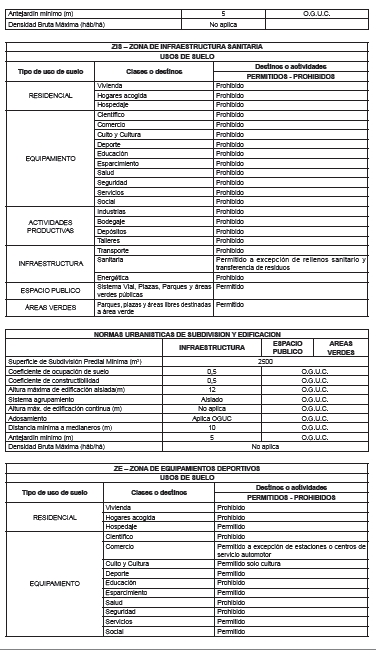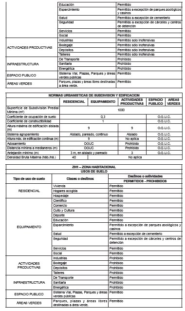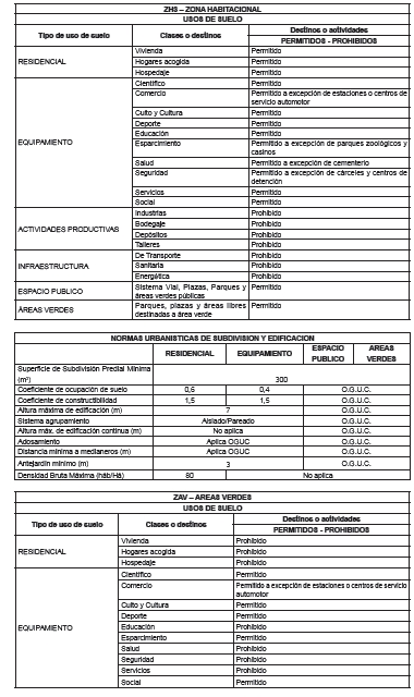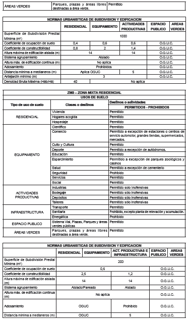 El área urbana de la comuna se divide en zonas, las cuales se encuentran geográficamente definidas en los planos identificados en el artículo 2° de la presente Ordenanza Local, cuyas normas urbanísticas son las siguientes: