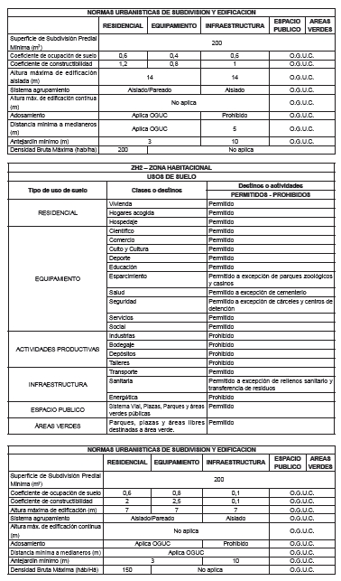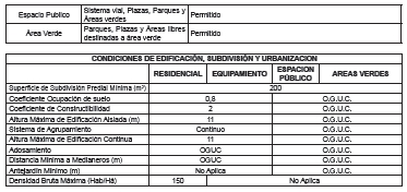 Las normas urbanísticas de subdivisión y/o edificación aplicable a las ampliaciones, reparaciones, alteraciones u obras menores que se realicen en las edificaciones existentes, así como las aplicables a las nuevas edificaciones que se ejecuten en esta zona, serán las que se detallan a continuación: