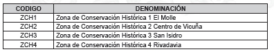 En el territorio del Plan se definen las Zonas e Inmuebles de Conservación Histórica que se individualizan en los siguientes cuadros: