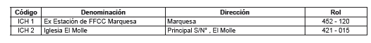 LISTADO DE INMUEBLES DE CONSERVACIÓN HISTÓRICA DE VICUÑA