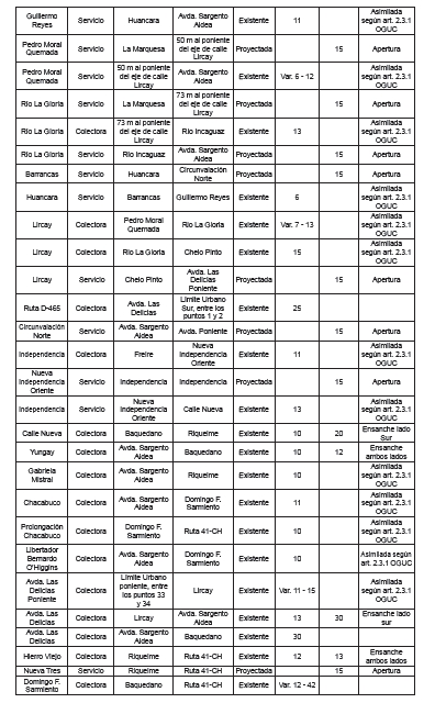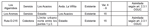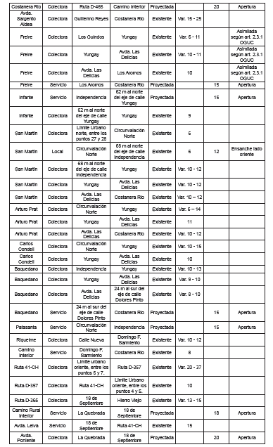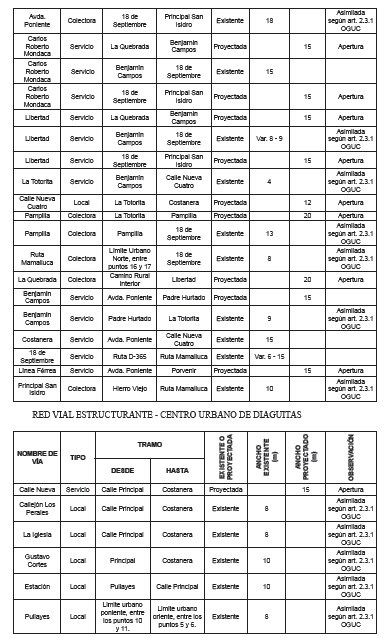 La Red Vial Estructurante está conformada por las vías consignadas en los Planos: PRC-VicuñaZUS-01, PRC-Vicuña-ZUS-02, PRC-Vicuña-ZUS-03, PRC-Vicuña-ZUS-04, PRC-Vicuña-ZUS-05 y PRC-Vicuña-ZUS-06; clasificadas en vías colectoras y de servicio, ateniéndose a lo dispuesto en el