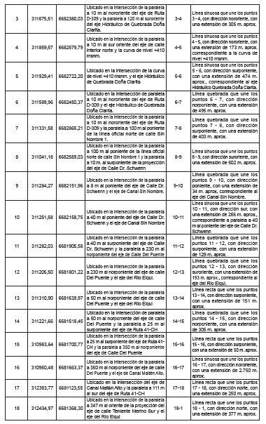 Está delimitada por el polígono cerrado definido por los vértices A, B, C, D, E, F y G, graficado en el Plano PRC- Vicuña-ZUS-05.