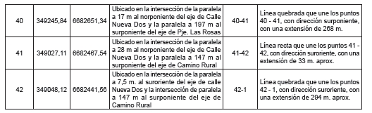 La poligonal que une los puntos 1, 2, 3, 4, 5, 6, 7, 8, 9, 10, 11, 12, 13, 14, 15, 16, 17, 18, 19, 20, 21, 22, 23, 24, 25, 26, 27, 28, 29, 30, 31, 32, 33, 34, 35, 36, 37, 38, 39, 40, 41 y 42 para la localidad de Rivadavia, cuya descripción se detalla a continuación: