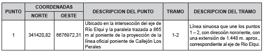 La poligonal que une los puntos 1, 2, 3, 4, 5, 6, 7, 8, 9, 10, 11, 12, 13, 14, 15, 16, 17 y 18 de la localidad de El Molle, cuya descripción se detalla a continuación: