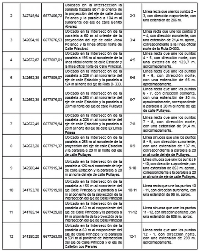 La poligonal que une los puntos 1, 2, 3, 4, 5, 6, 7, 8, 9, 10, 11 y 12 para la localidad de Diaguitas, cuya descripción se detalla a continuación: