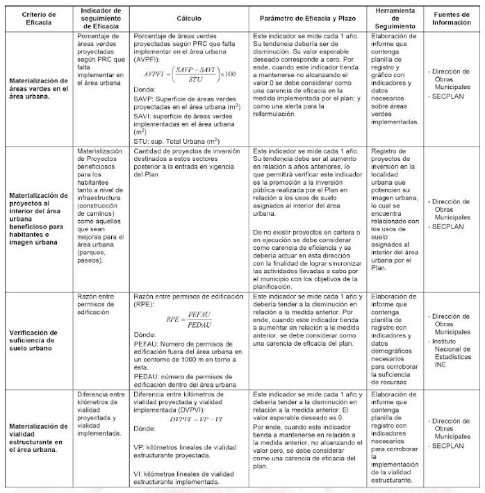 - Un plan de seguimiento de las variables ambientales relevantes que son afectadas producto del Plan desarrollado, junto al plan de seguimiento destinado a controlar la eficacia del Plan y el plan de rediseño.