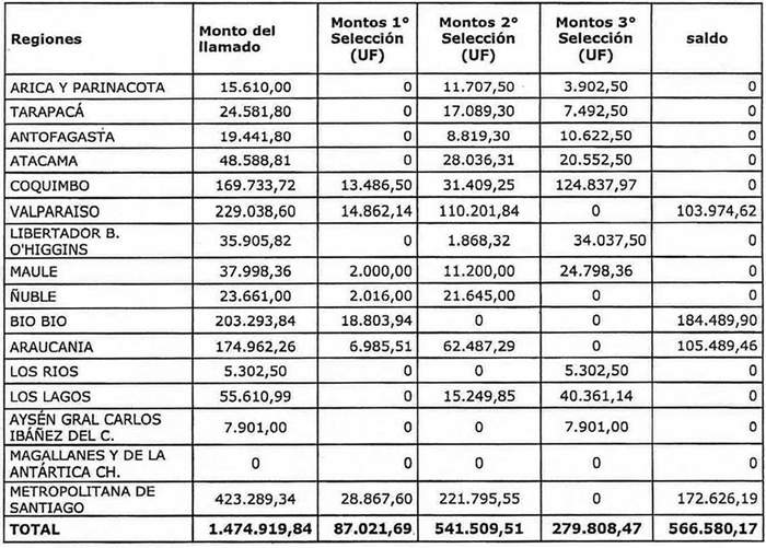 La 1ª selección dispondrá del 100% de los recursos señalados en el resuelvo 7 y los llamados siguientes dispondrán de los saldos sucesivos.