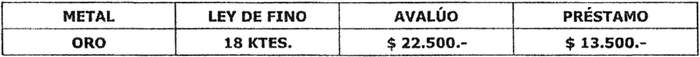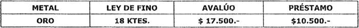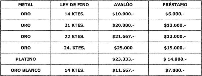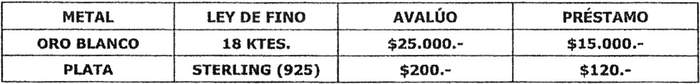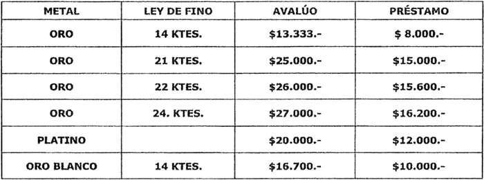 1. Fíjese nuevo avalúo por el gramo de metales nobles, utilizado por las Unidades de Crédito en el cálculo de los préstamos con garantía prendaria del rubro alhajas conforme a la siguiente tabla y las siguientes condiciones: