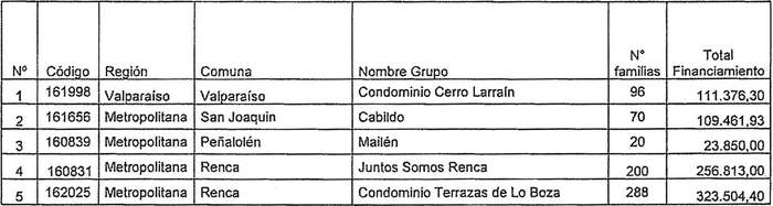 NÓMINA DE GRUPOS SELECCIONADOS - LLAMADO EFECTUADO MEDIANTE RESOLUCIÓN EXENTA Nº 536 (V. Y U.), DE 2020 - COMPLEMENTA SELECCIÓN CIERRE 26 DE NOVIEMBRE DE 2020