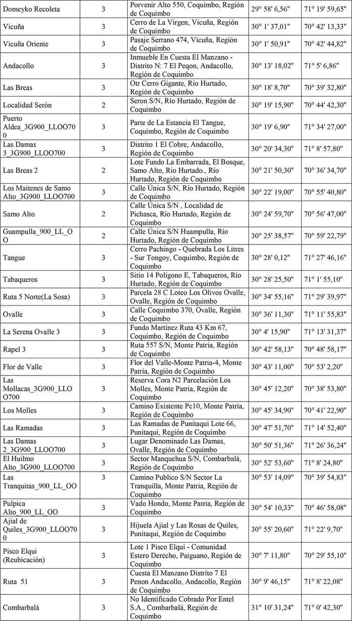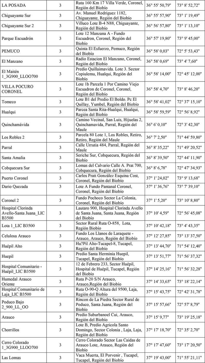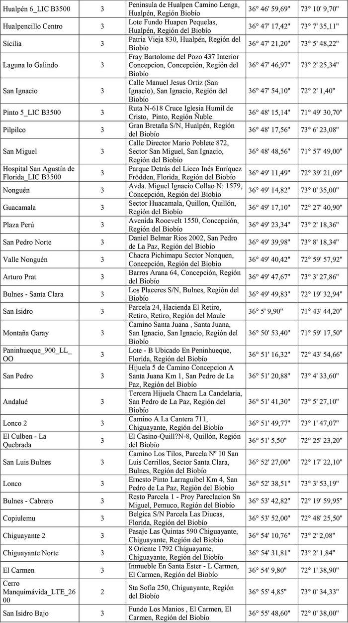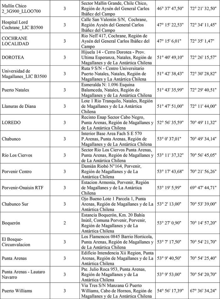 16. Plazo para el inicio del servicio: Para el proyecto de cobertura comunal: 12 meses para las estaciones pertenecientes a la etapa 1; y 24 meses para las estaciones pertenecientes a la etapa 2, todos contados desde la fecha de publicación en el Diario Oficial del decreto que otorga la concesión. Para el proyecto de cobertura complementaria en polígonos georreferenciados: 24 meses, contados desde la fecha de publicación en el Diario Oficial del decreto que otorga la concesión.