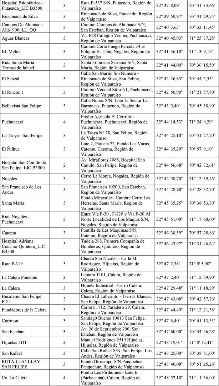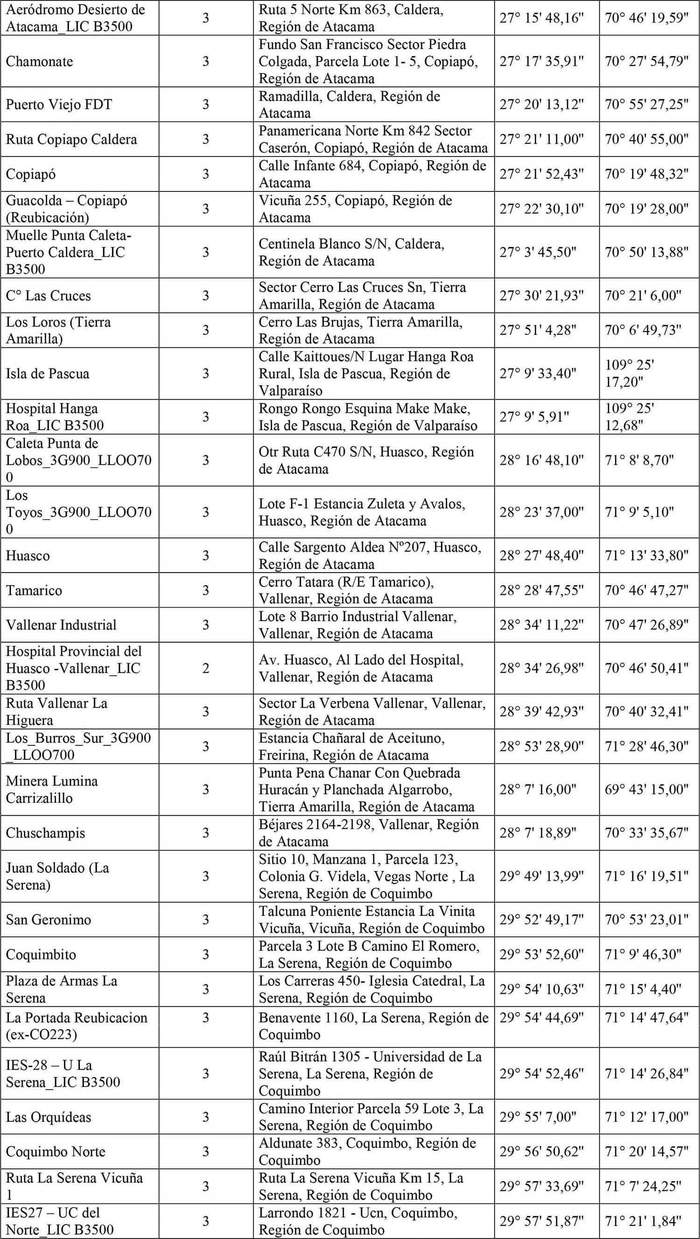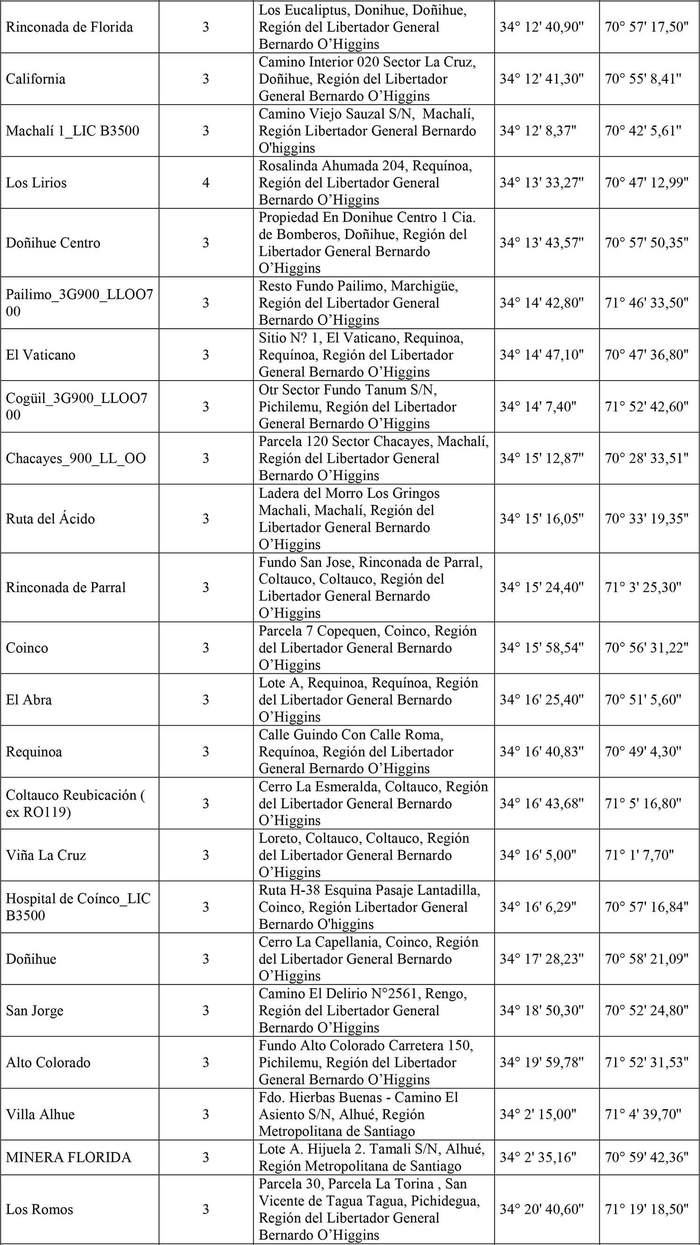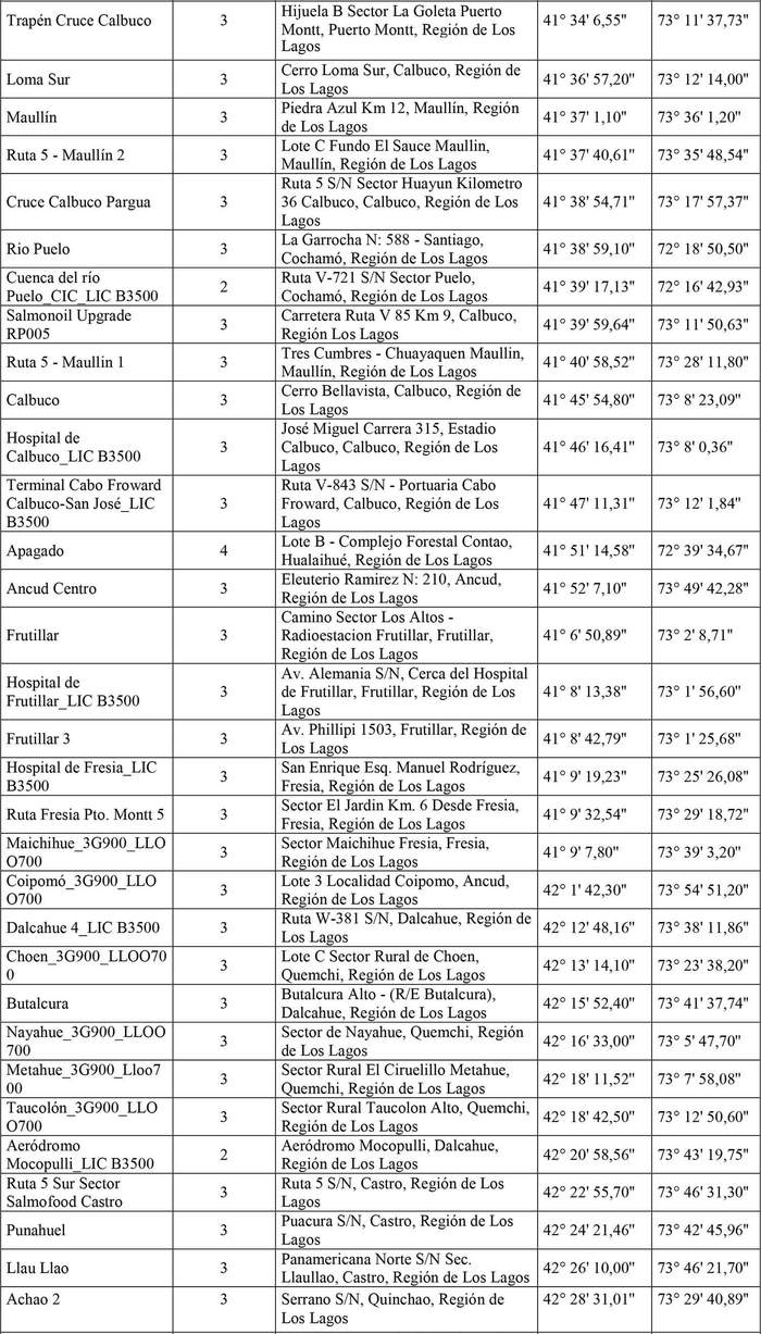 16. Plazo para el inicio del servicio: Para el proyecto de cobertura comunal: 12 meses para las estaciones pertenecientes a la etapa 1; y 24 meses para las estaciones pertenecientes a la etapa 2, todos contados desde la fecha de publicación en el Diario Oficial del decreto que otorga la concesión. Para el proyecto de cobertura complementaria en polígonos georreferenciados: 24 meses, contados desde la fecha de publicación en el Diario Oficial del decreto que otorga la concesión.