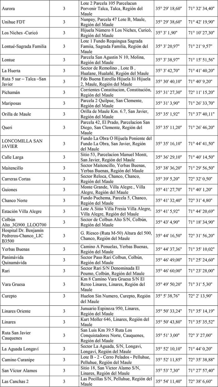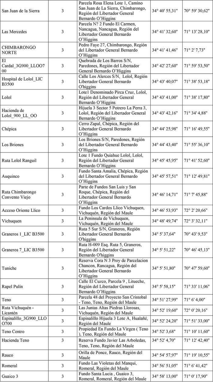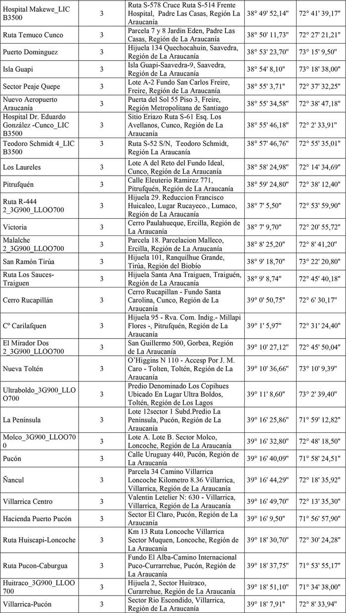 La presente publicación se hace de acuerdo a lo dispuesto en el artículo 13 C de la Ley Nº 18.168, General de Telecomunicaciones, y en el artículo 7° del decreto supremo N° 412, de 1995, del Ministerio de Transportes y Telecomunicaciones, a fin de que cualquier interesado en ello pueda efectuar una reclamación dentro del plazo de 10 días hábiles contados de la presente publicación. De existir una reclamación, ésta deberá ser fundada, presentarse por escrito ante la Ministra de Transportes y Telecomunicaciones, acompañar todos los medios de prueba que acrediten los hechos que la fundamentan y fijar domicilio dentro del radio urbano de la comuna de Santiago.-