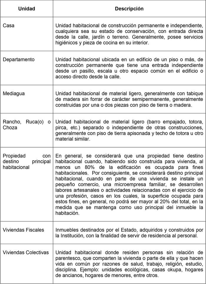 . En la pregunta referida al "Tipo de Vivienda", deberá registrarse la categoría correspondiente a la residencia del grupo familiar, de acuerdo al siguiente detalle: