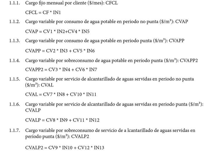 La definición de las variables incorporadas en las fórmulas tarifarias anteriores y sus respectivos valores, al 31 de julio de 2016, son los indicados a continuación: