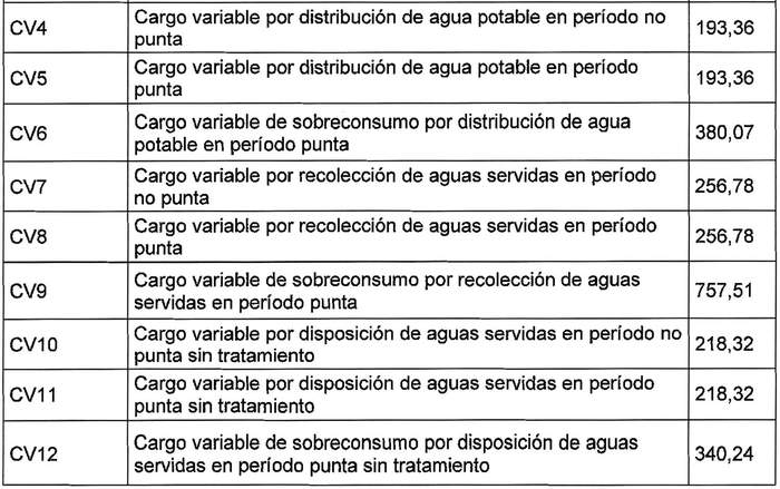 2.3. CARGO VARIABLE POR SERVICIO DE AGUA POTABLE EN PERIODO PUNTA