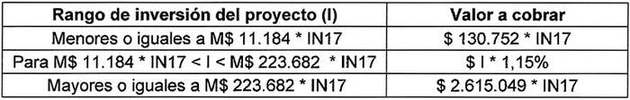 Donde I corresponde al monto total de la construcción del proyecto, en pesos.