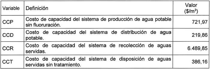 No obstante, cumple con hacer presente que las variables CV7 a CV12, definidas en la tabla del numeral 1.3. del acto administrativo analizado, se refieren a cargos relativos a aguas servidas, y no a agua potable, como erróneamente se consigna.